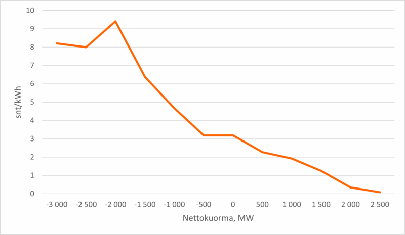 Sähkön hinta suhteessa sähköverkon nettokuormaan