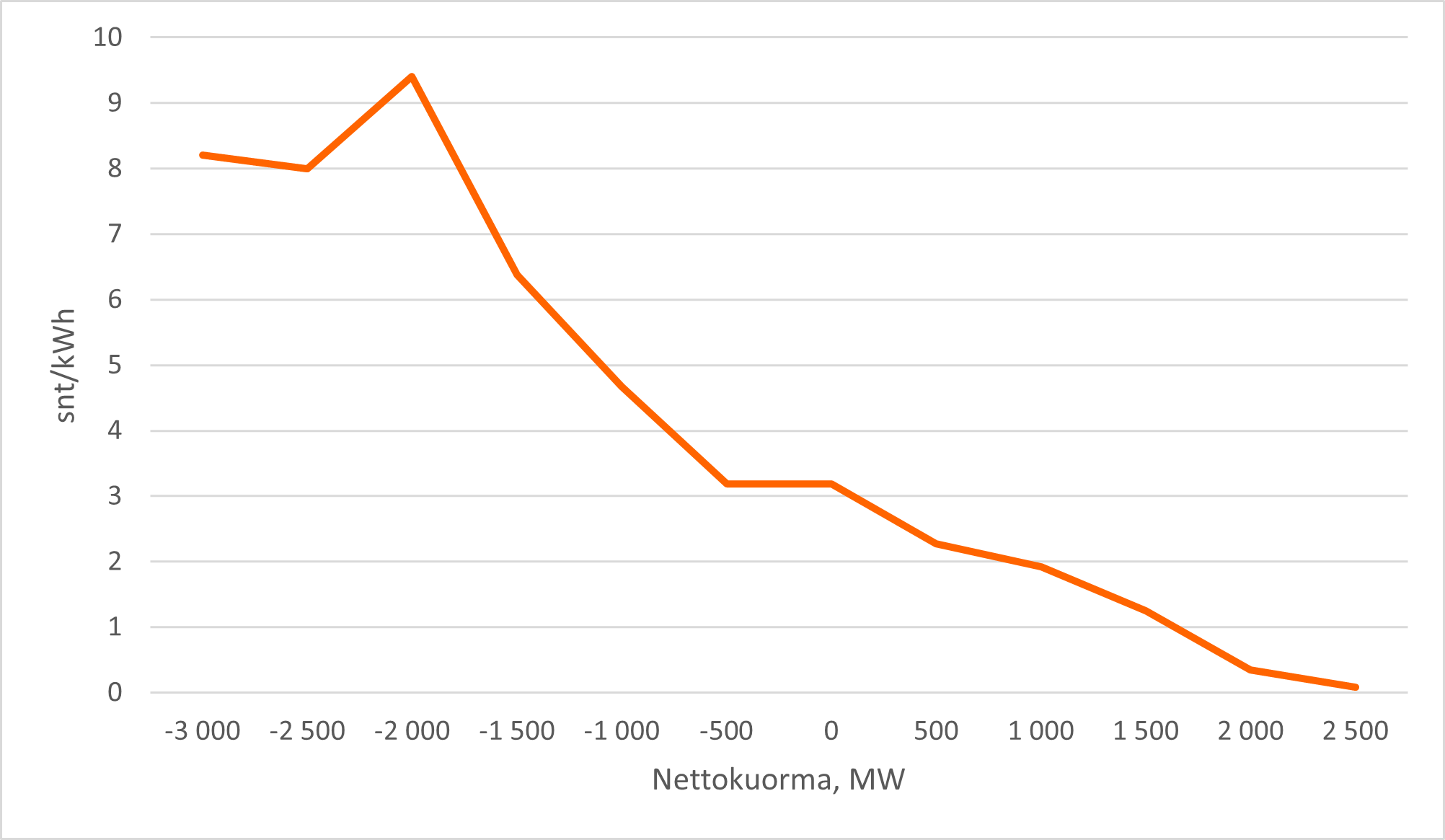 Sähkön hinta suhteessa sähköverkon nettokuormaan