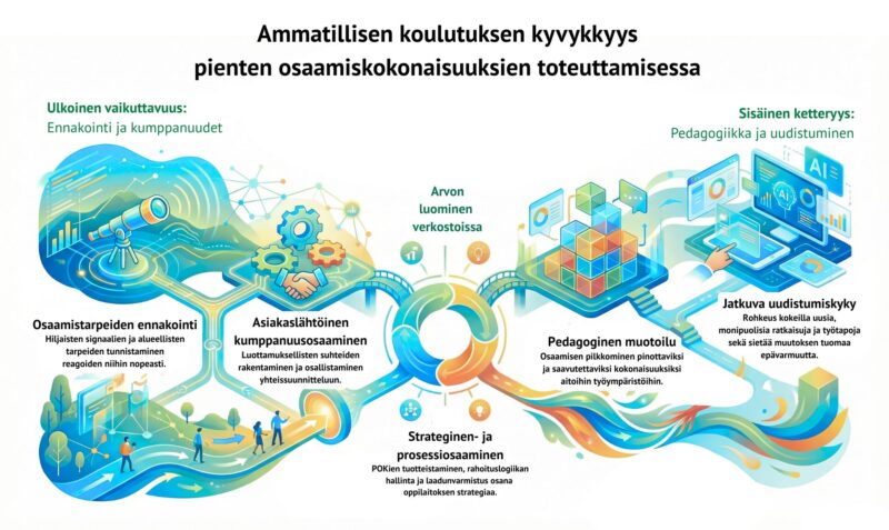 Pienet osaamiskokonaisuudet haastavat perinteiset ammatillisen koulutuksen tutkintorakenteet ja avaavat uusia mahdollisuuksia osaamisen kehittämiseen elämän ja työuran eri vaiheissa. Pienet osaamiskokonaisuudet eivät ainoastaan tue jatkuvaa oppimista – ne voivat muuttaa koko koulutuksen kulttuurin perustaa, siirtäen painopistettä kohti oppijan omistamaa ja digitaalisesti tunnustettavaa osaamista.