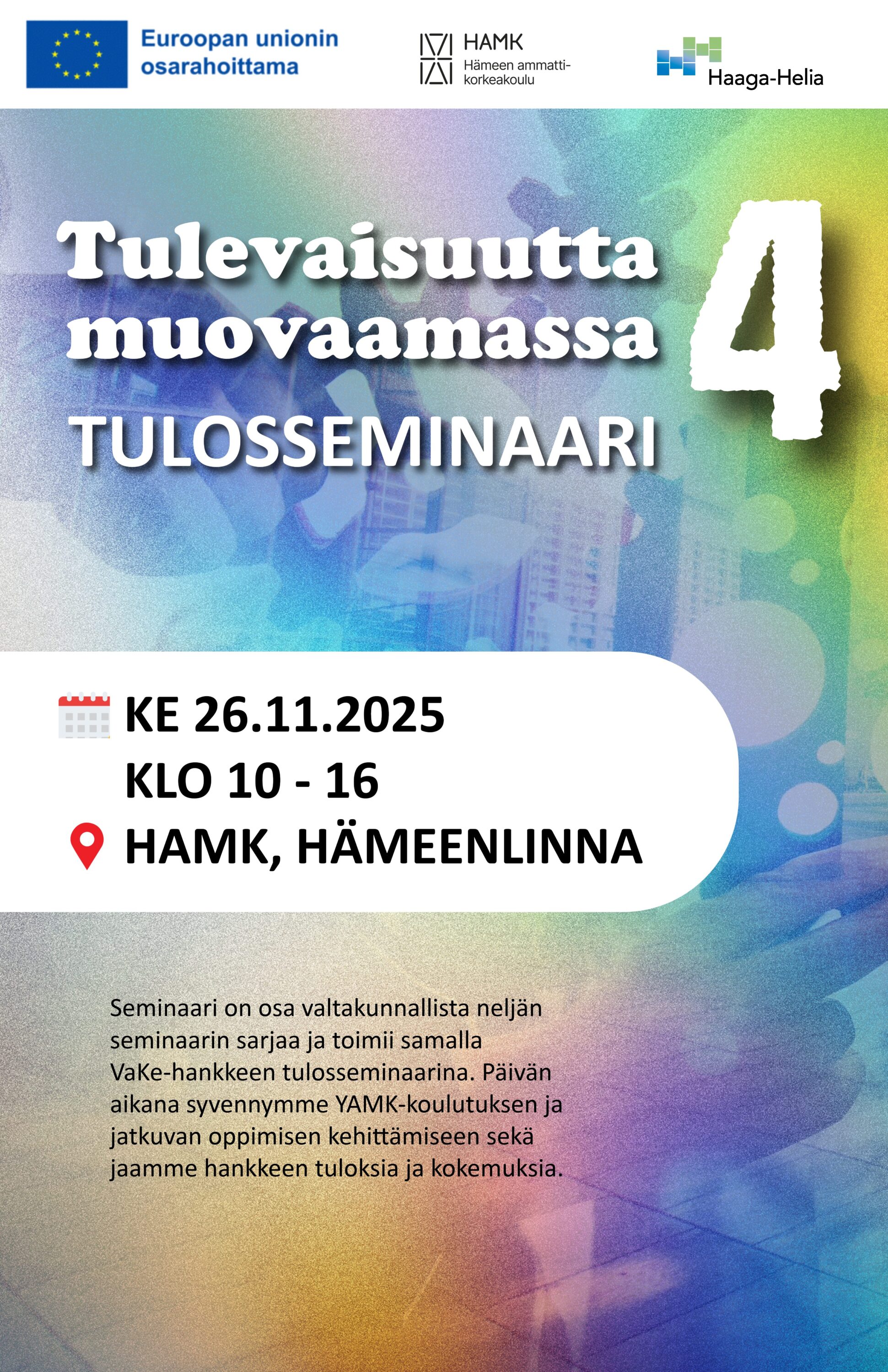 Järjestäjät: Hämeen ammattikorkeakoulu ja Haaga-Helia, yhteistyössä VaKe-hankkeen kumppaneiden kanssa!